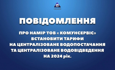 Про намір ТОВ «КОМУНСЕРВІС» встановити тарифи на централізоване водопостачання та централізоване водовідведення на 2024 рік