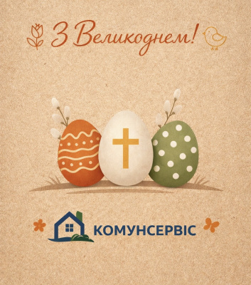 Колектив обслуговуючої організації «Комунсервіс» щиро вітає вас із найвеличнішим святом – Світлим Христовим Воскресінням!